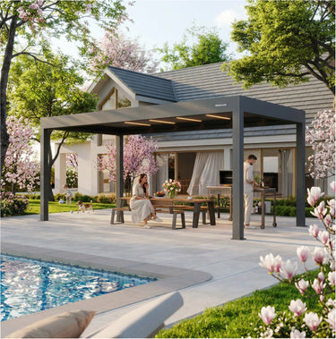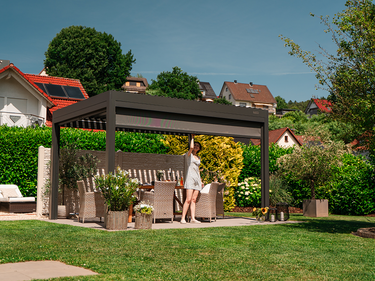 Genieße mit unserer Pergola deinen Außenbereich das ganze Jahr über – bei Regen, Schnee oder Sonne.