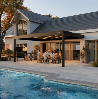 • Mehr Platz. Mehr gemeinsame Zeit. Für BBQs im Winter oder ein sonniges Sonntagessen im Frühling öffnen unsere Pergolen Dein Zuhause, um Platz für wichtige Momente zu schaffen.