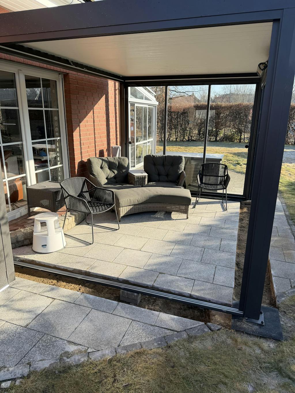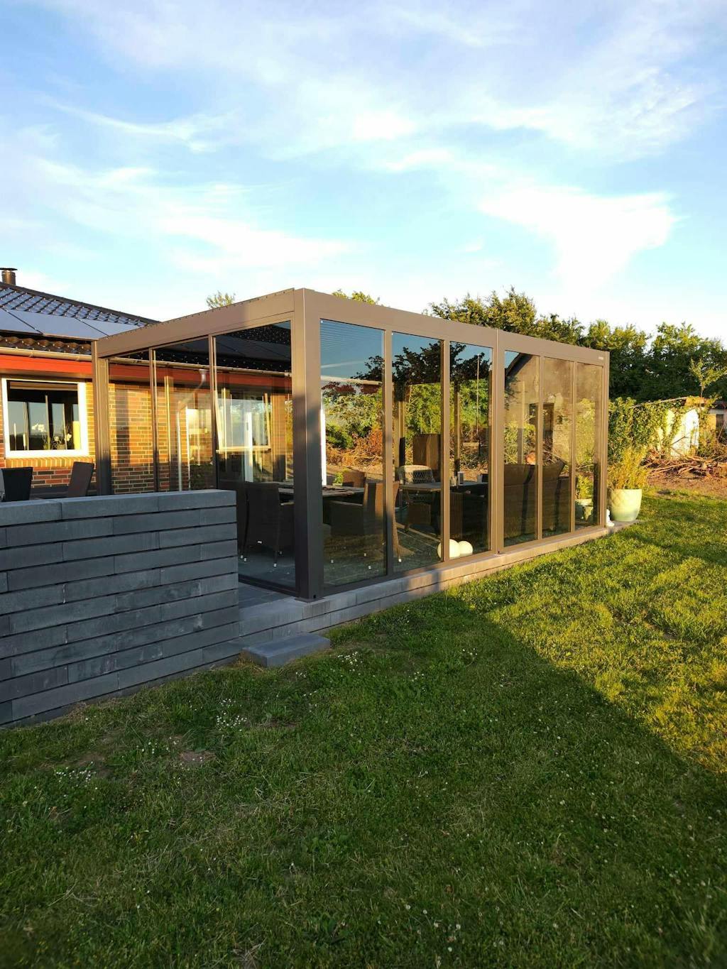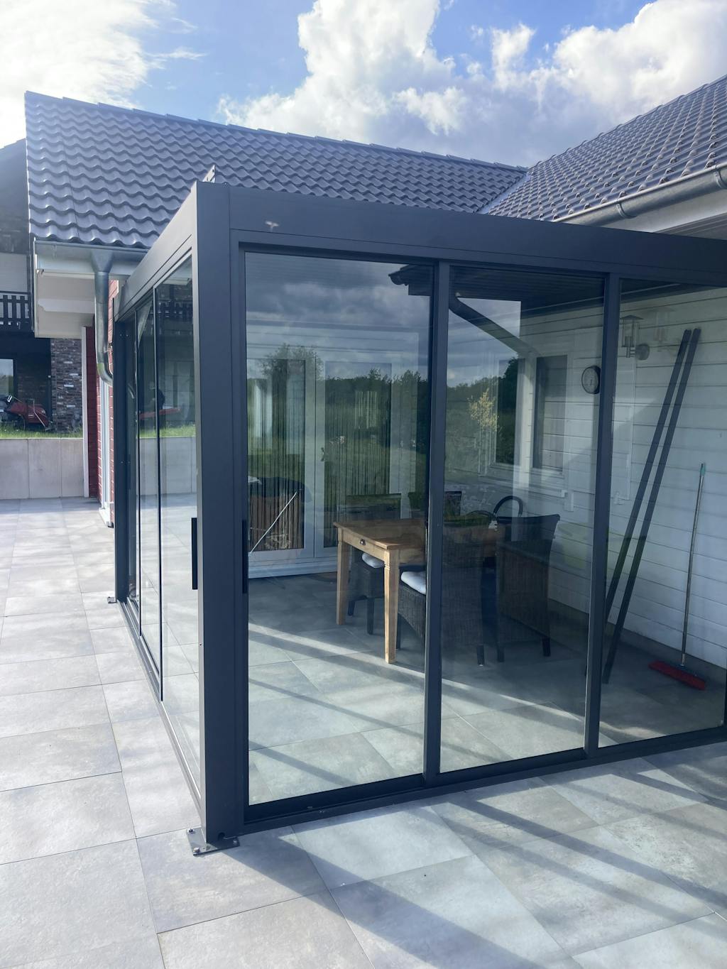 Die hochwertigen Glaswände schützen zuverlässig vor Wind und Regen und sorgen gleichzeitig für ein helles, offenes Raumgefühl – so verbinden sie Funktionalität und Design auf höchstem Niveau.